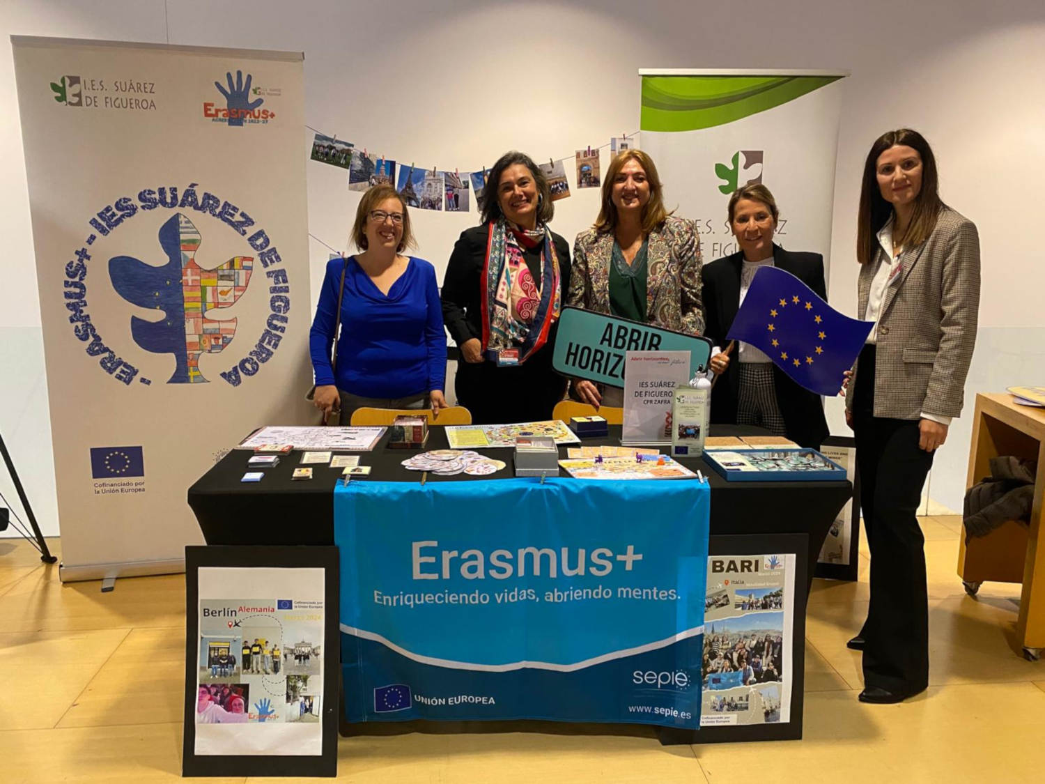 Nuestras compañeras Loli Rodríguez, María Ángeles Alcántara y Luz Mª Barragán han estado atendiendo nuestro stand en dicha Jornada, que pretende visibilizar y compartir las buenas prácticas desarrolladas en Extremadura e impulsar nuevas iniciativas que fortalezcan la dimensión internacional de la educación. El I.E.S. Suárez de Figueroa no podía faltar.