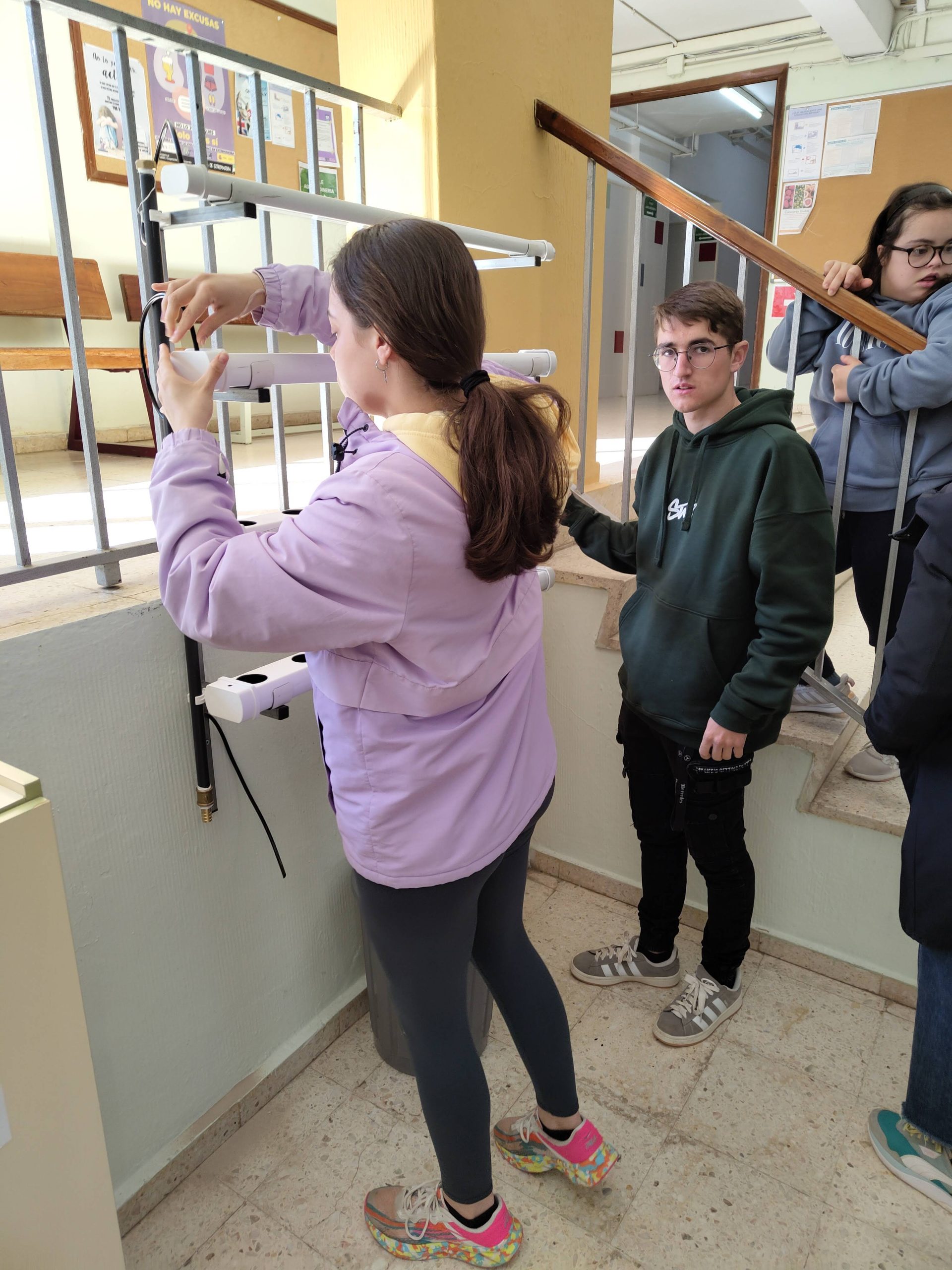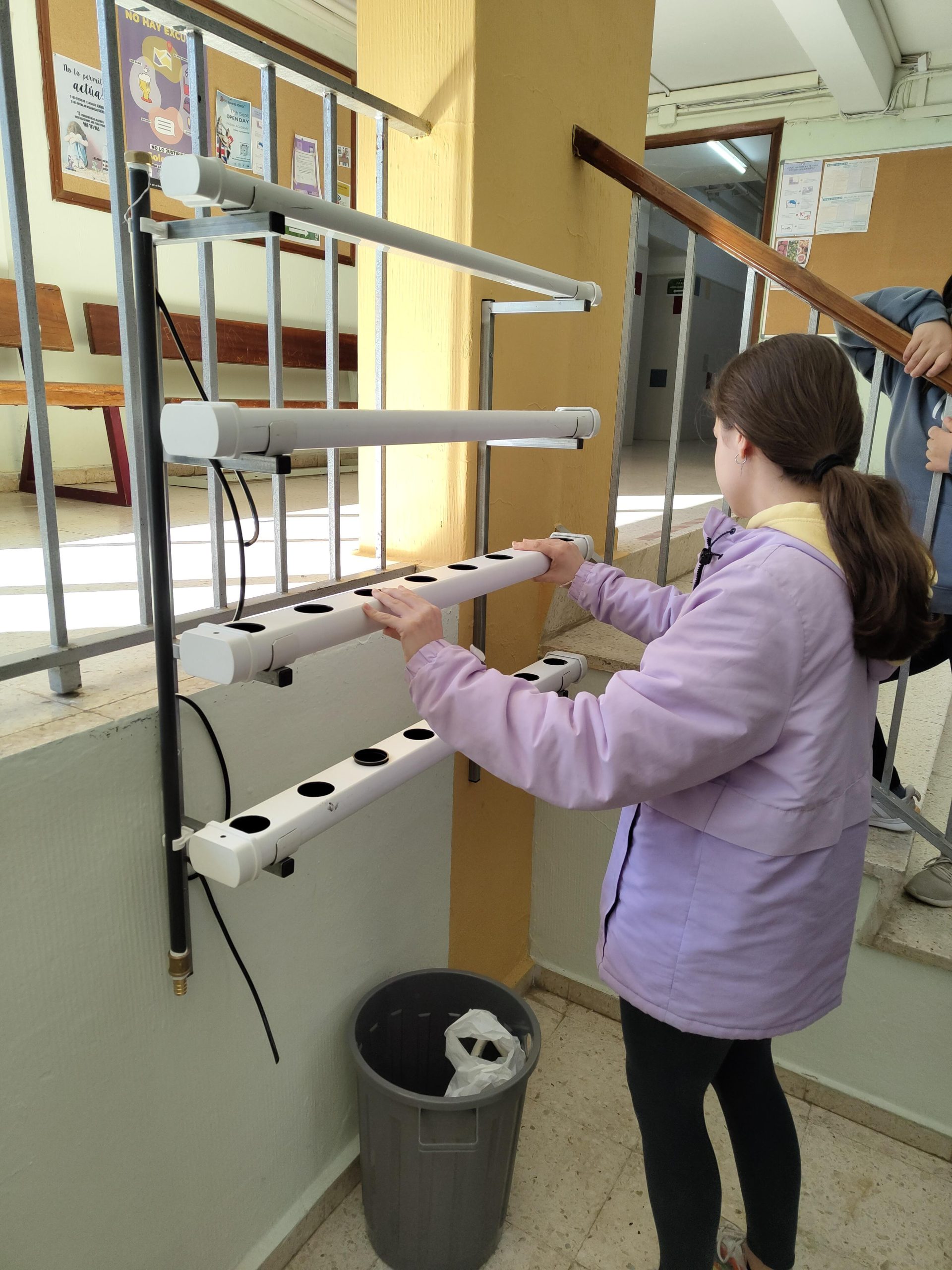 El alumnado de FP Básica Específica instala un huerto hidropónico en el hall del centro