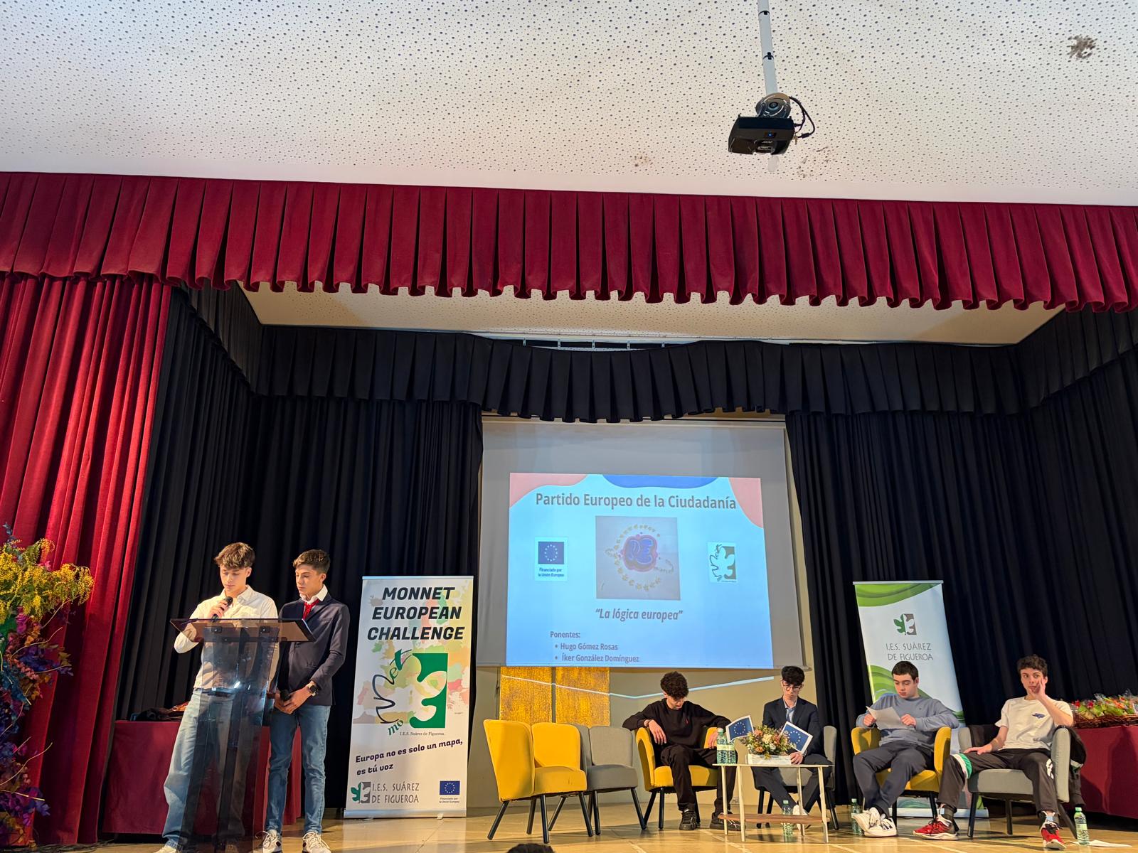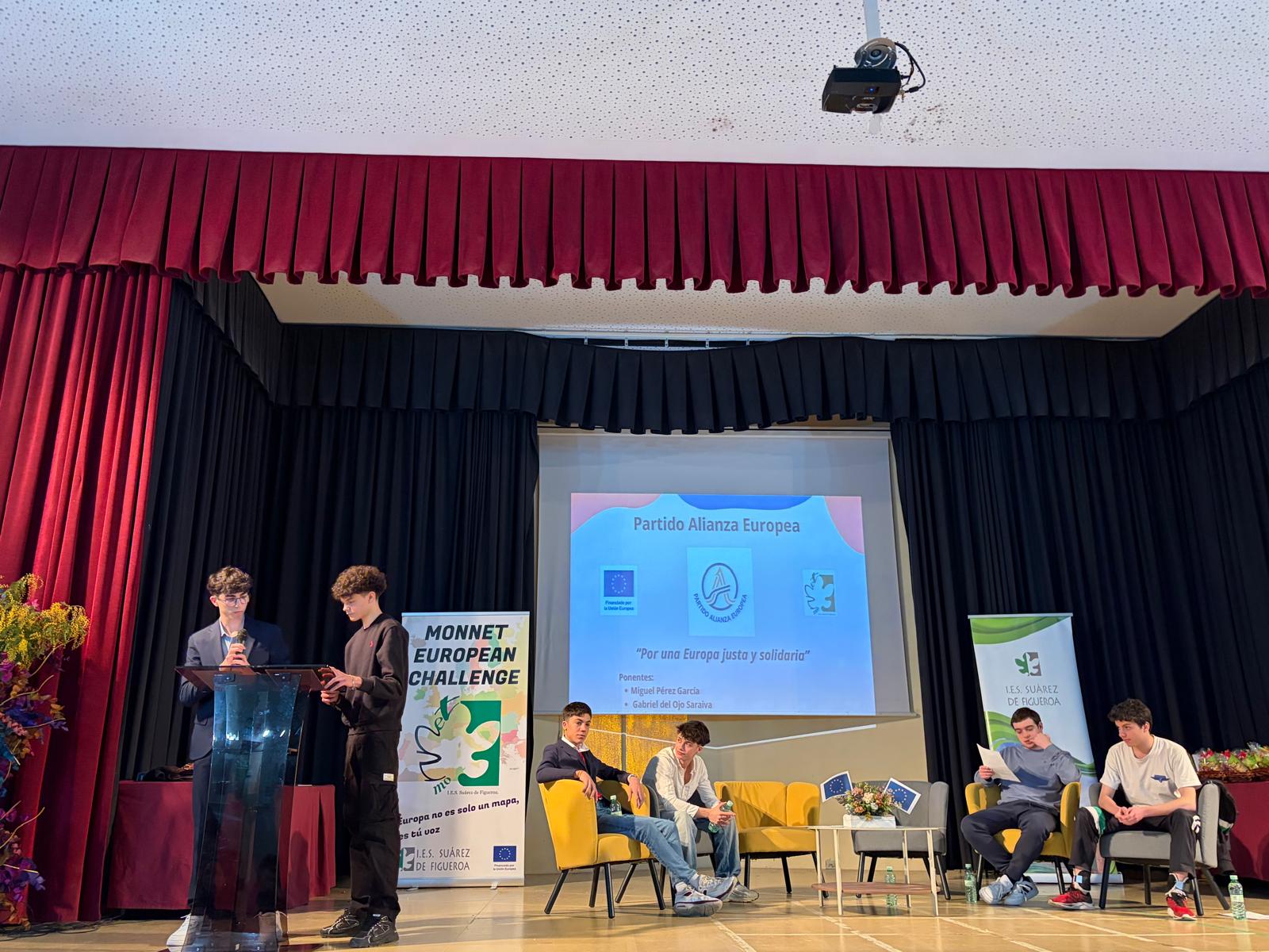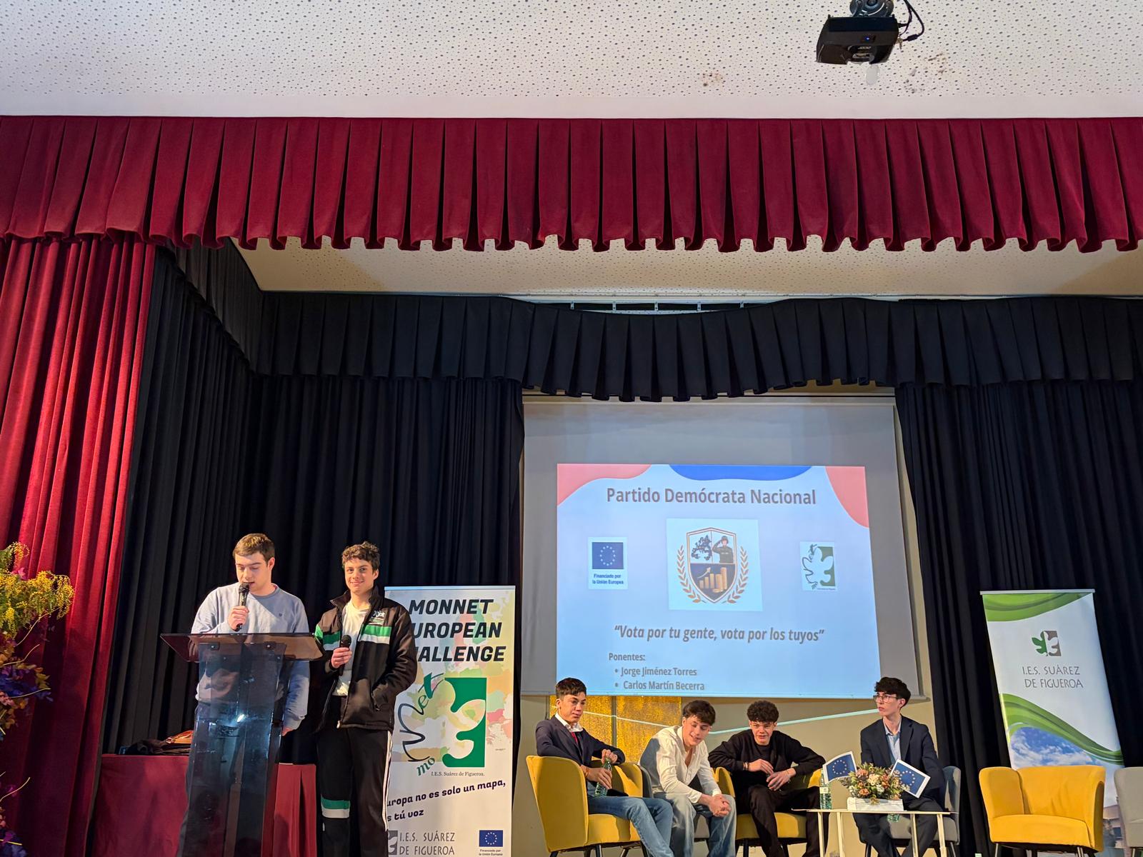 El día 25 de febrero nuestro instituto vivió una experiencia educativa tan enriquecedora como emocionante: la celebración de un mitin político simulado en el marco de la actividad “El Parlamento del Suárez”. La propuesta consistía en que tres partidos ficticios, creados y representados por nuestro alumnado, se presentaran a unas supuestas elecciones europeas defendiendo sus programas, ideas y propuestas ante el resto de compañeros y compañeras.